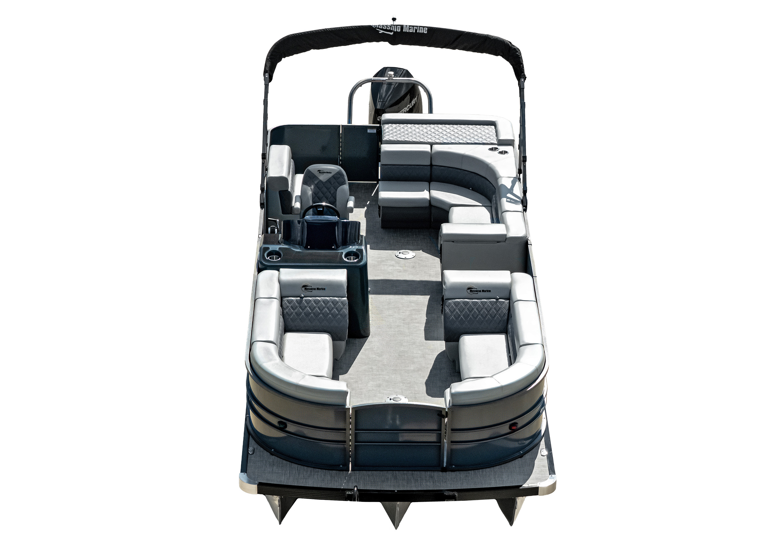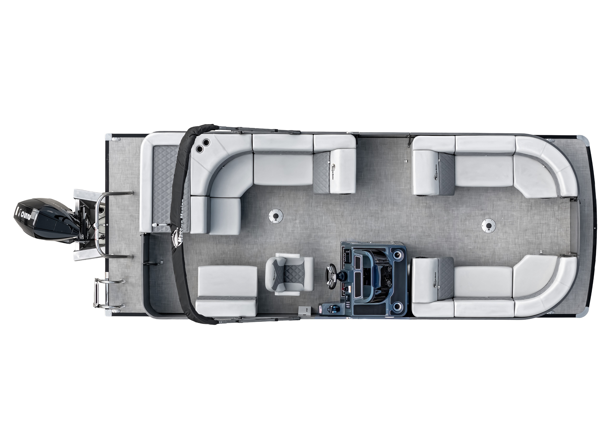 The T-24 offer a luxurious and comfortable experience, where value and convenience meet. Equipped with 90hp up to 400hp Mercury outboard engines, our boats offer a range of options for optimal power. The T-24 hosts a variety of features that enhance your boating experience, including six 5.5″ 200W speakers, a 1950Watt 5 Channel amplifier, a 10″ 800w Subwoofer, side RGB lights, 5.5″ TouchScreen LCD Audio Display, Hammer Coat Fence Rail Finish, USB Ports, 12V Port and optional ski tow. Our boats also have safety features such as a bimini-mounted anchor/navigation light, mooring eye on starboard side for tie off, and a motor-stop safety lanyard.